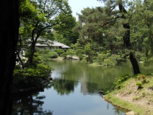 池を挟んでの景色