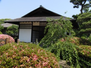四阿。ちょうどツツジが満開