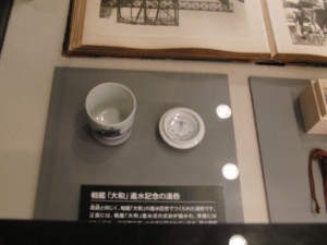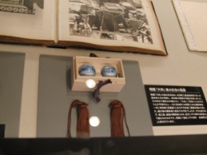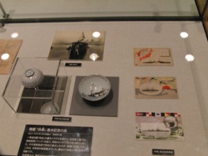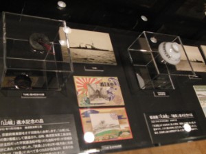大和・武蔵と銘打っているものの、いろんな艦の進水式記念品なども展示してありました。写真ぶれは……まあ、そうねぇ。